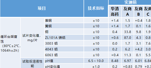 該產品采用非離子型緩蝕劑協同技術,初始電導率控制在80μS/cm以下,并對紫銅、黃銅、鑄鋁、焊鋁等多種金屬提供全面防護。