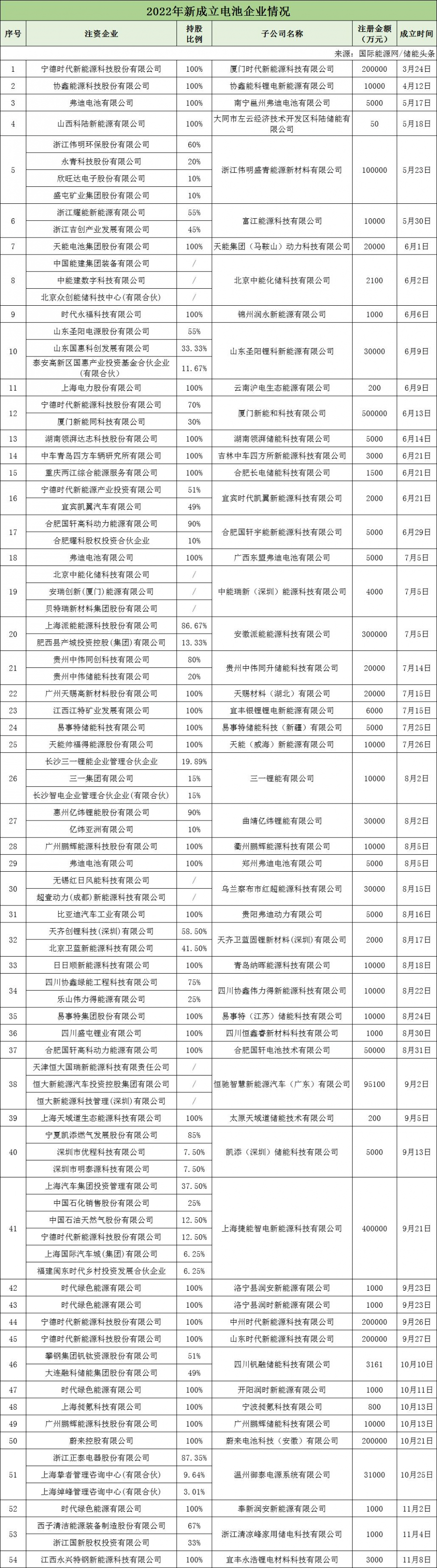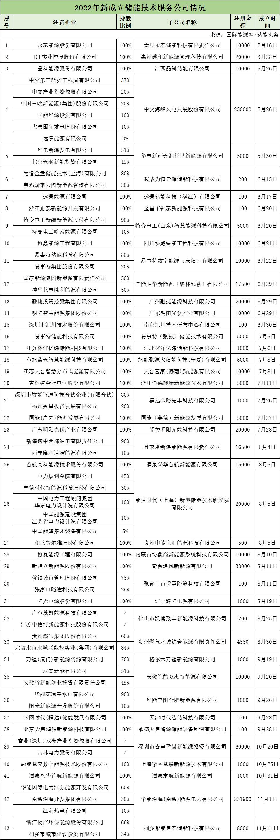 各類資本紛紛加碼近兩年,儲能受到各方資本熱捧。作為新能源產業的核心,儲能技術和產業的發展也備受關注。隨著市場需求的逐漸擴張,以及利好政策的不斷加持,不僅初創企業和上市公司投資布局,各大私企、央企也紛紛步入儲能這一價值藍海。在2022年至今新成立的企業中,國家能源集團、國家電投、大唐集團、華電集團、中國能建、三峽集團、國家電網等多家央企參與投資。