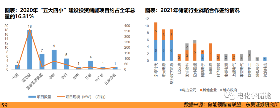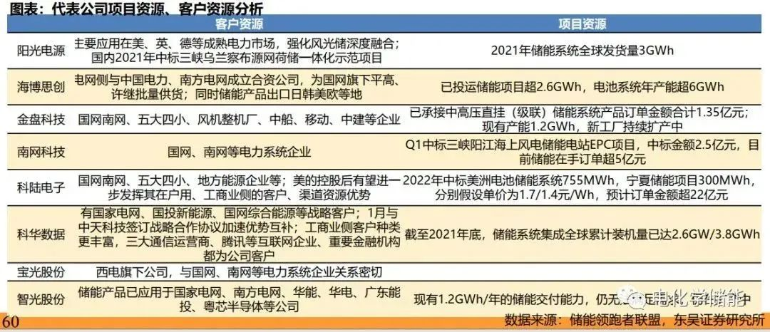 在客戶資源方面:1、從項目獲取看,目前發電側儲能需求主要仍來自新能源強制配儲,而電力集團是風電、光伏開發的主力軍,也是招標項目的主要來源。儲能系統集成商正通過戰略合作尋求與業主的深度綁定,2021年華為、陽光電源等紛紛與“兩網”、“五大六小”等電力集團以及地方政府等簽訂系列戰略合作協議,以求在項目獲取上能有更大優勢。