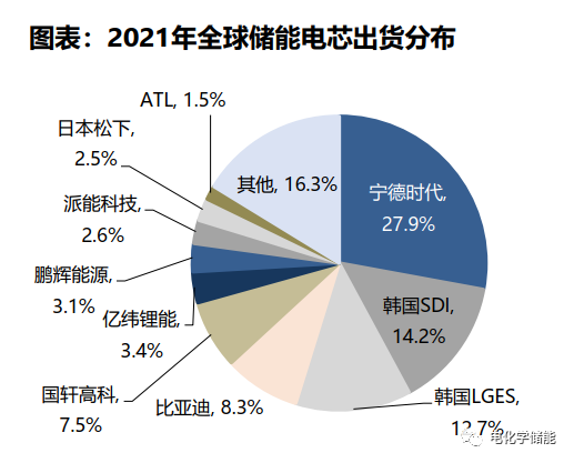 全球儲能電芯中國廠商出貨領先,寧德時代出貨量全球第一。