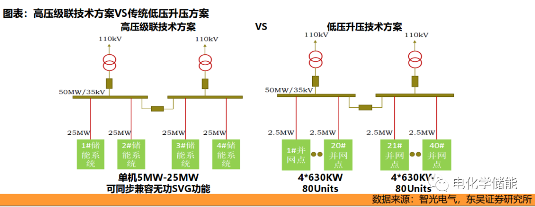 在電氣拓撲結構方面,大容量下高壓級聯方案優勢顯著。