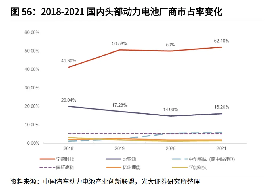 寧德時代最近連續7個月單月電池裝機量占比低于50\%,半壁江山份額已有所動搖。動力電池需求大幅增長,二線廠商獲取增量市場份額的同時,渴望上位的野心“昭然若揭”。