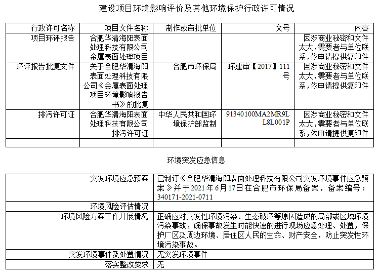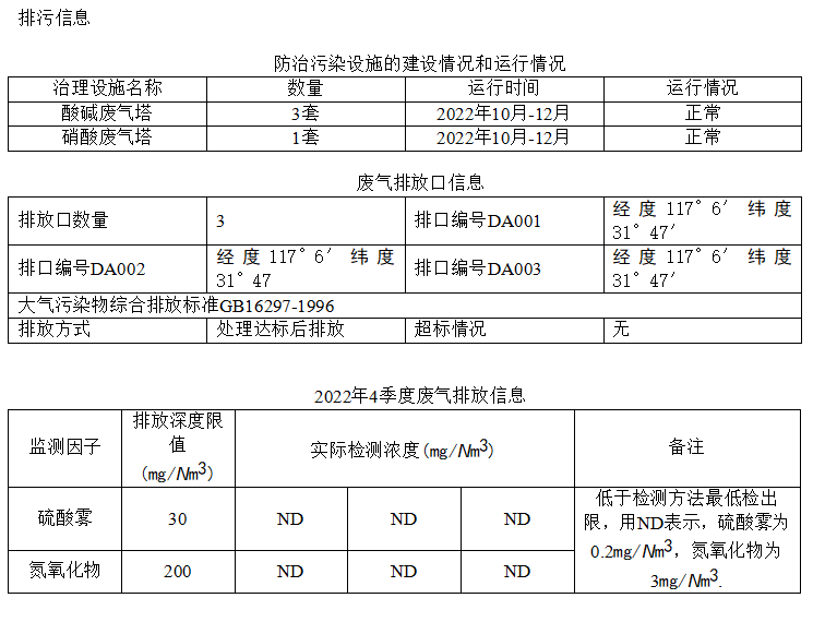 合肥華清海陽表面處理科技有限公司2022年第四季度信息公開表