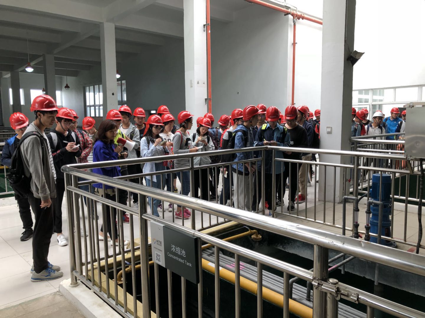 在公司相關部門負責人的陪同下,來訪師生先后參觀了華清基地的自動化電鍍生產線、廢水處理中心、廢水處理監控室、廢水處理池等核心車間,基地的工作人員就基地的廢水處理工藝、流程及設施,向工大師生做出了具體的介紹。工大師生在了解了廢水中心的先進技術和優秀工藝之后,對華清基地的廢水處理工程欽佩不已。