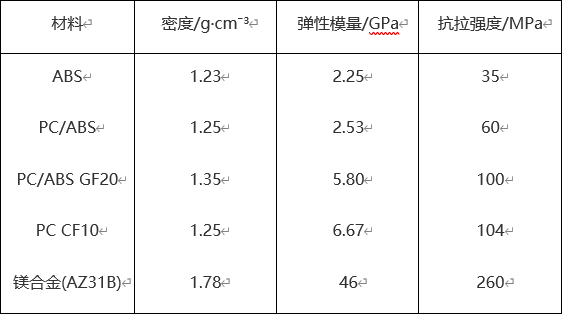 通常情況下,電子器件的外殼采用工程塑料制造,例如聚碳酸酯(PC)、聚碳酸酯/丙烯腈-丁二烯-苯乙烯共聚物(PC/ABS)、尼龍/聚苯醚(Nylon/PPE)以及碳纖維增強塑料等。部分電子器件也會采用鋁合金制件。為了減輕殼體的重量,常常通過減小殼體的壁厚來實現(xiàn)。然而,當(dāng)上述材料的壁厚減至1mm以下時,它們的剛度、耐沖擊性和抗變形能力將顯著降低,無法滿足使用要求。