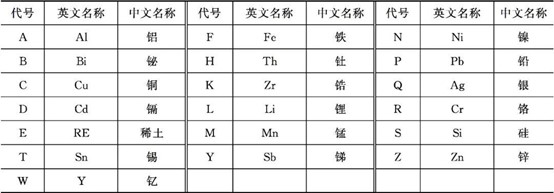 表1 鎂合金中合金元素代號