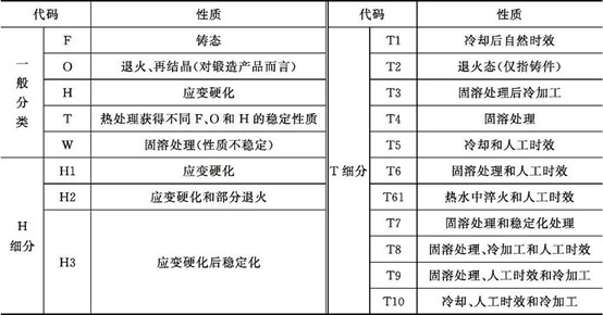 ASTM鎂合金命名法中還包括表示鎂合金性質(zhì)的代碼系統(tǒng),由字母外加一位或多位數(shù)字組成(表2-2)。合金代碼后為性質(zhì)代碼,以連字符分開。如AZ91D-T表示熱處理態(tài)Mg-9Al-Zn合金。