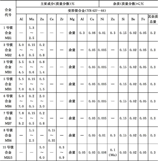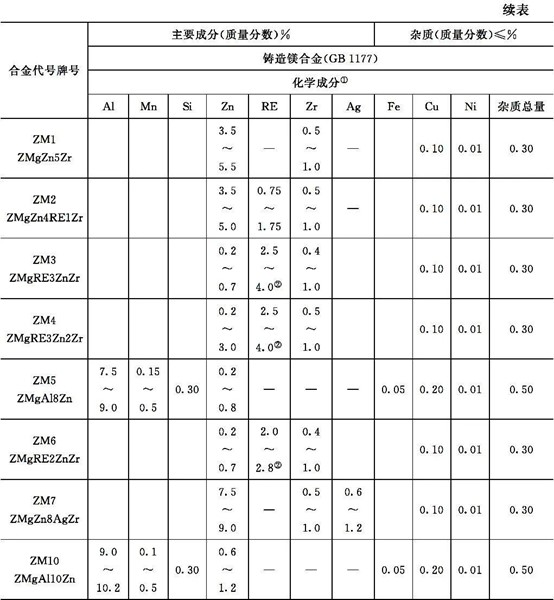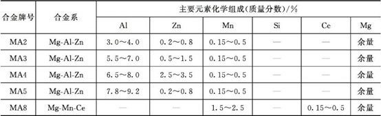 表3 國產(chǎn)鎂合金的牌號和主要成分