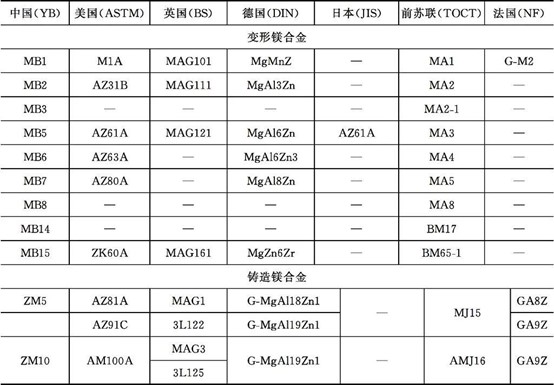 鎂合金的牌號分類與性能對比